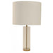 Lámpara de mesa de 1 luz de 60W, diseñada en acrílico , metal y tela, con acabados en bronce y transparente, para un ambiente moderno. Rosca E27.