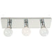 Lámpara de pared de 3 luces con un máximo de 60W, diseñada en metal y vidrio, con acabados en cromo y plateado, ideal para el baño o salón de maquillaje, perfecta para decorar con un ambiente moderno. No incluye bombillos rosca E27.