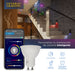 Bombillo LED inteligente marca ECOMAX de 5w, RGB y luz cambiable de cálida a blanca (2700k - 6500k), rosca GU10, diseñado en aluminio con recubrimiento plástico. Encendido y apagado programable. Tiempo de vida 15,000h.