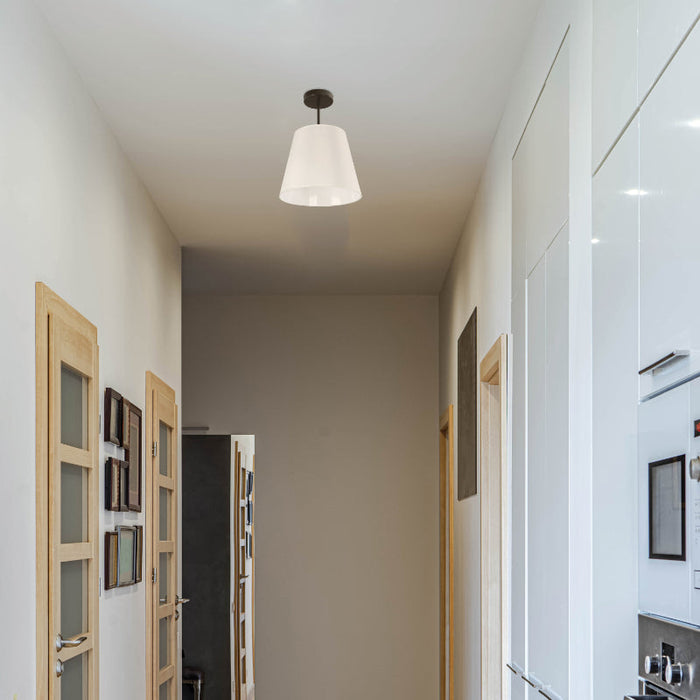 Lámpara de techo marca ARTELUCE de una luz con un máximo de 40w, diseñada en metal, con acabados en chocolate y pantalla blanca, ideal para el interior de tu casa como sala, lobby o comedor con un ambiente moderno. No incluye bombillo rosca E27.