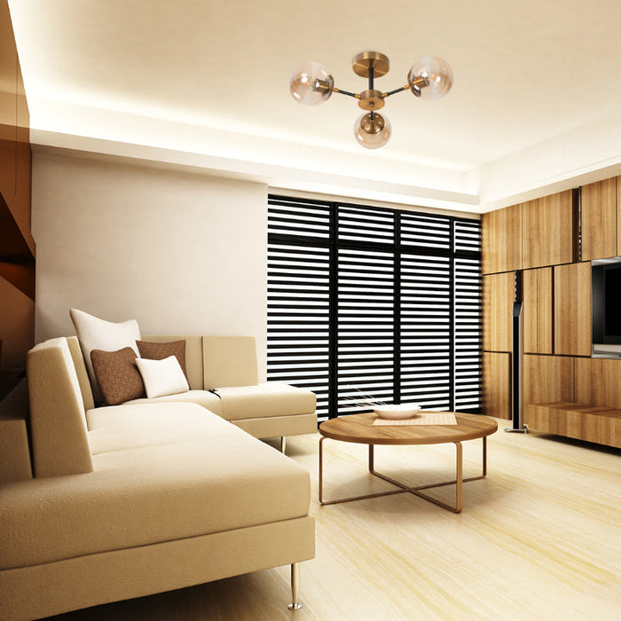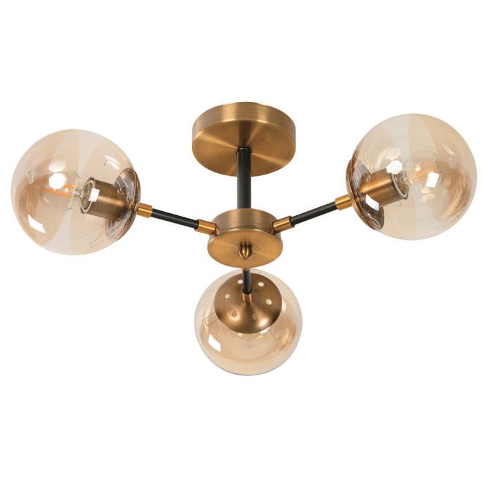 Lámpara de techo de 3 luces de 40W, diseñada en acero , vidrio con acabados en dorado satinado para un ambiente moderno. Rosca E27.