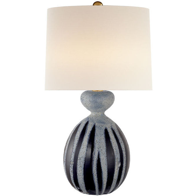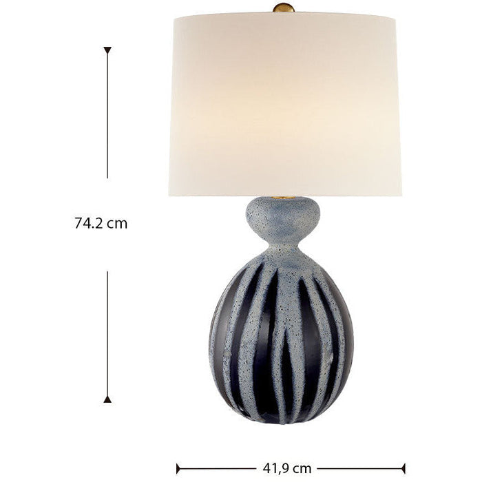 Lámpara de mesa de noche marca VISUAL COMFORT de 1 luz diseñada con esmaltes cerámicos reactivos y cobalto en colores oscuros, ideal para tu sala, habitación o comedor con un ambiente moderno.