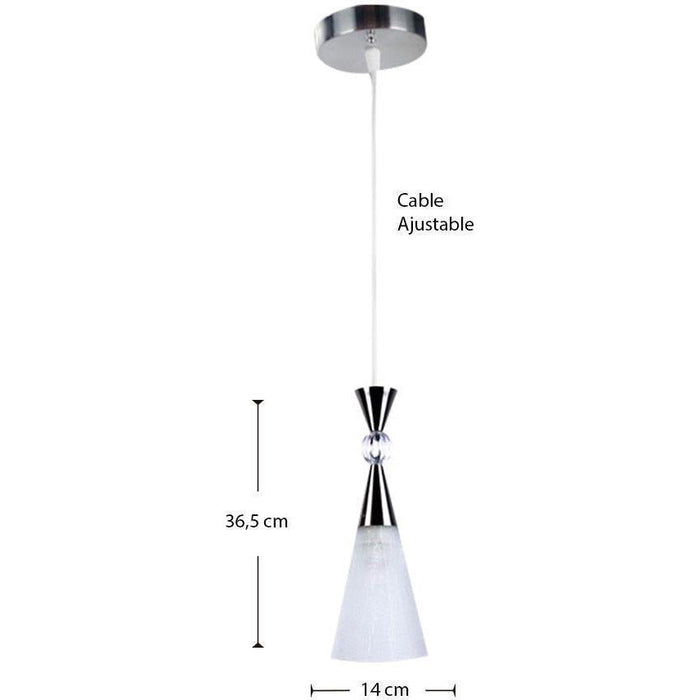 Esta impresionante lámpara colgante está diseñada con materiales de primera calidad para brindarle un ambiente moderno a tu hogar. El acero y el acrílico con acabados en níquel satinado, hacen que esta lámpara se destaque y se vea increíble. Viene con una luz de 60W, con una rosca E27, para que puedas colocar la luz que desees. Esta lámpara es perfecta para añadir un toque moderno a cualquier habitación.